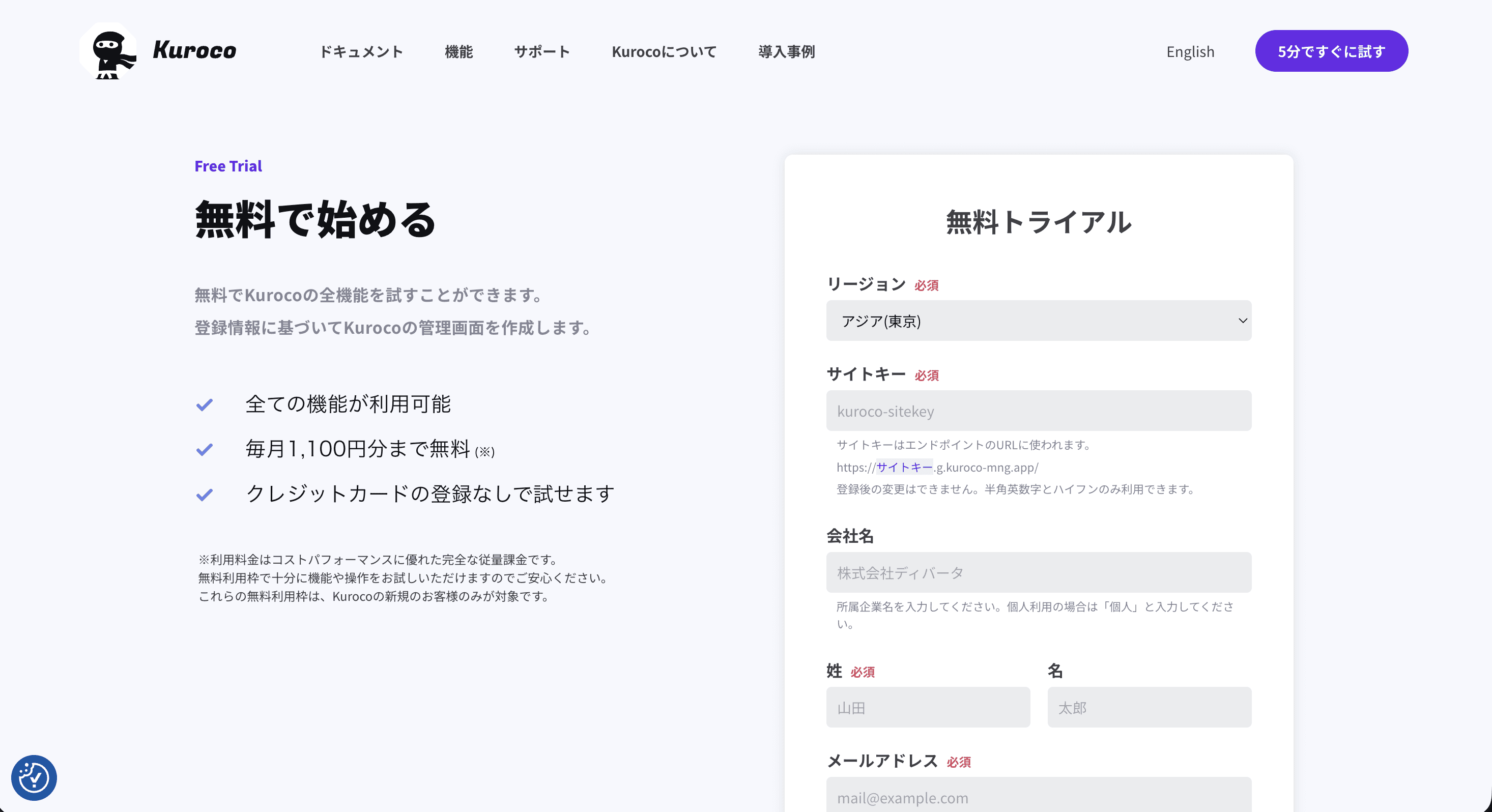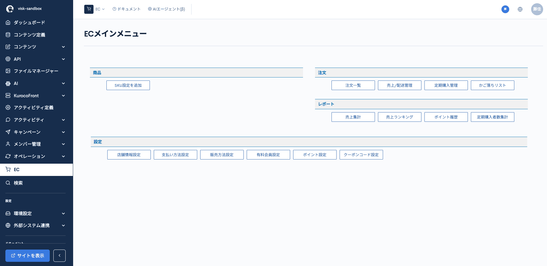 KurocoのEC機能・フォーム機能・承認ワークフローは管理画面で項目があるのを見ただけで、実機検証してません