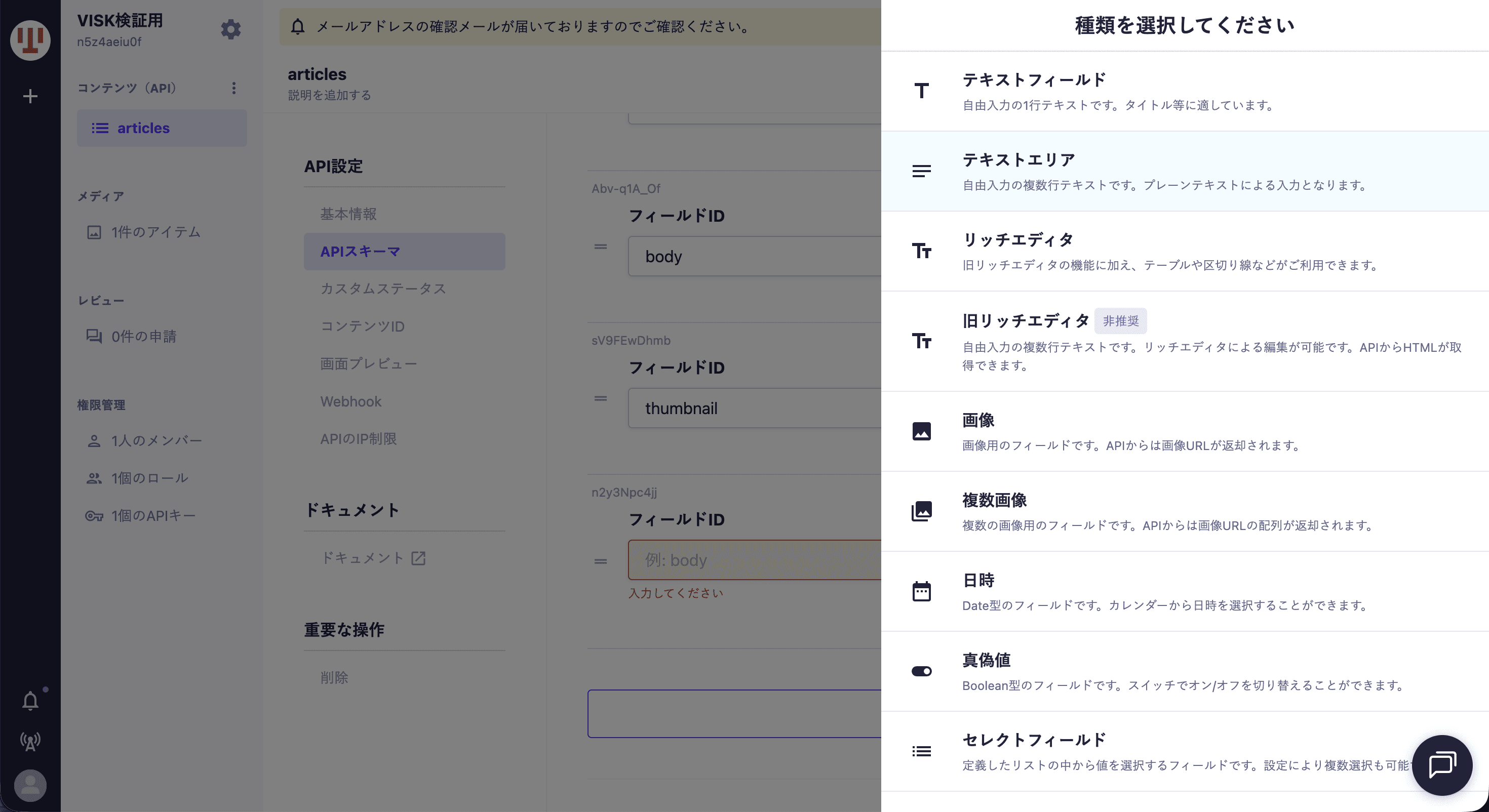 microCMSのカスタムフィールド・繰り返しフィールドは今回触ってません(API作成後に追加可能ですが時間切れ)