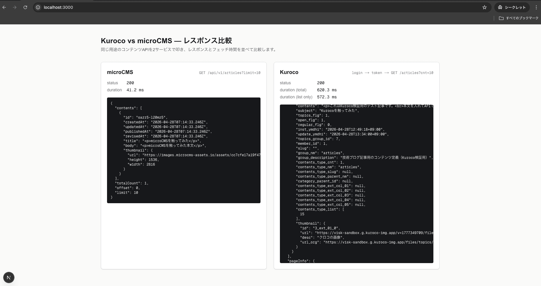 「Kurocoを触ってみてくれ」と言われたので、microCMSと真っ向比較してみた
