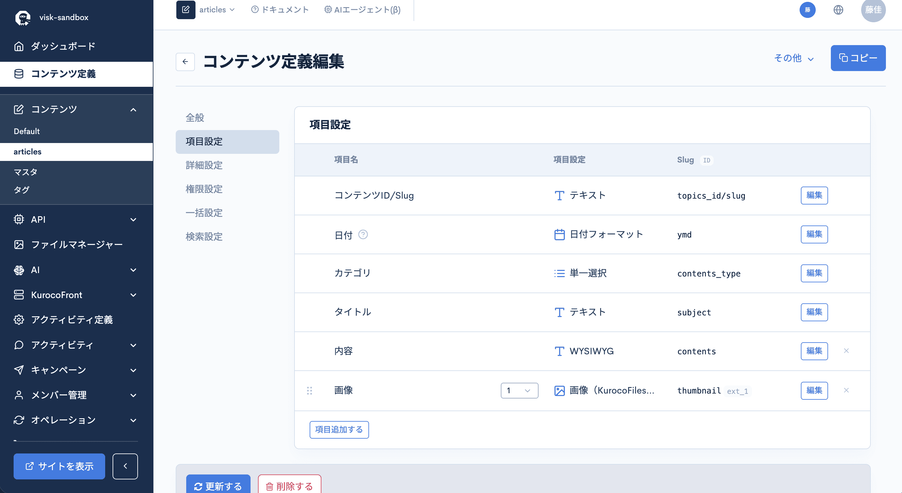 Kuroco:管理画面で扱うすべてのフィールドをそのまま返却