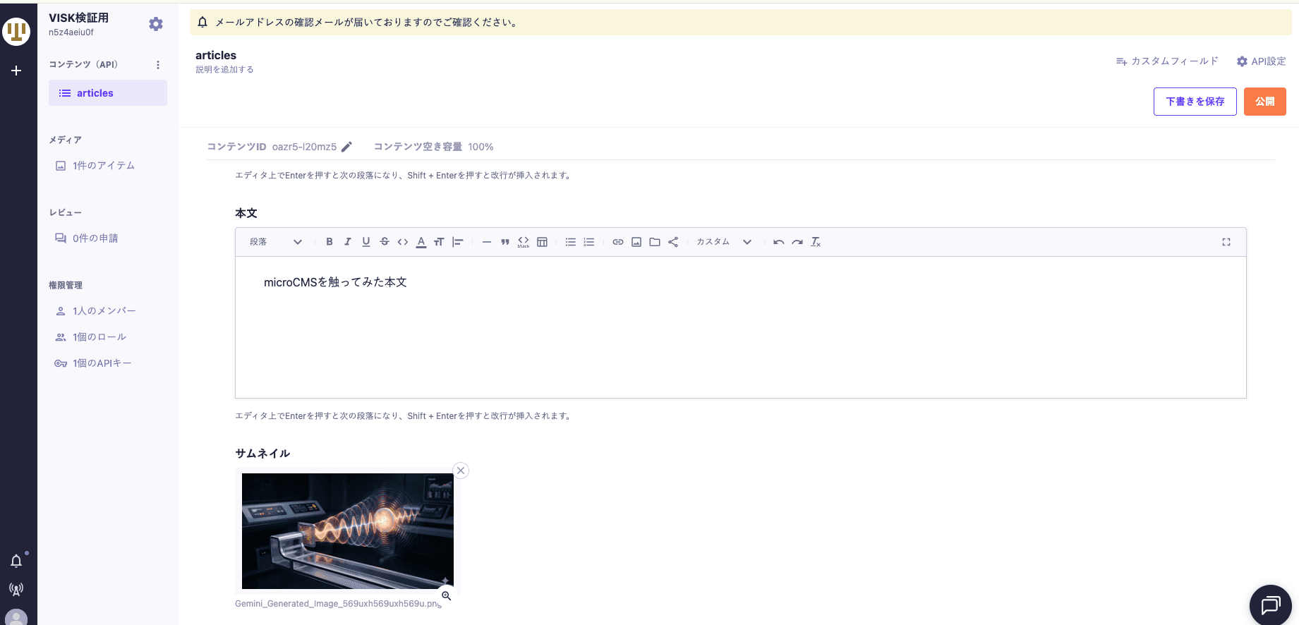 https://[サイトキー]説明文に小さく書かれていたのが「登録後の変更はできません」。これは後で触ったmicroCMSと真逆の仕様で、本番運用前に名前変えたくなったときの柔軟性で差が出るポイントでした。
