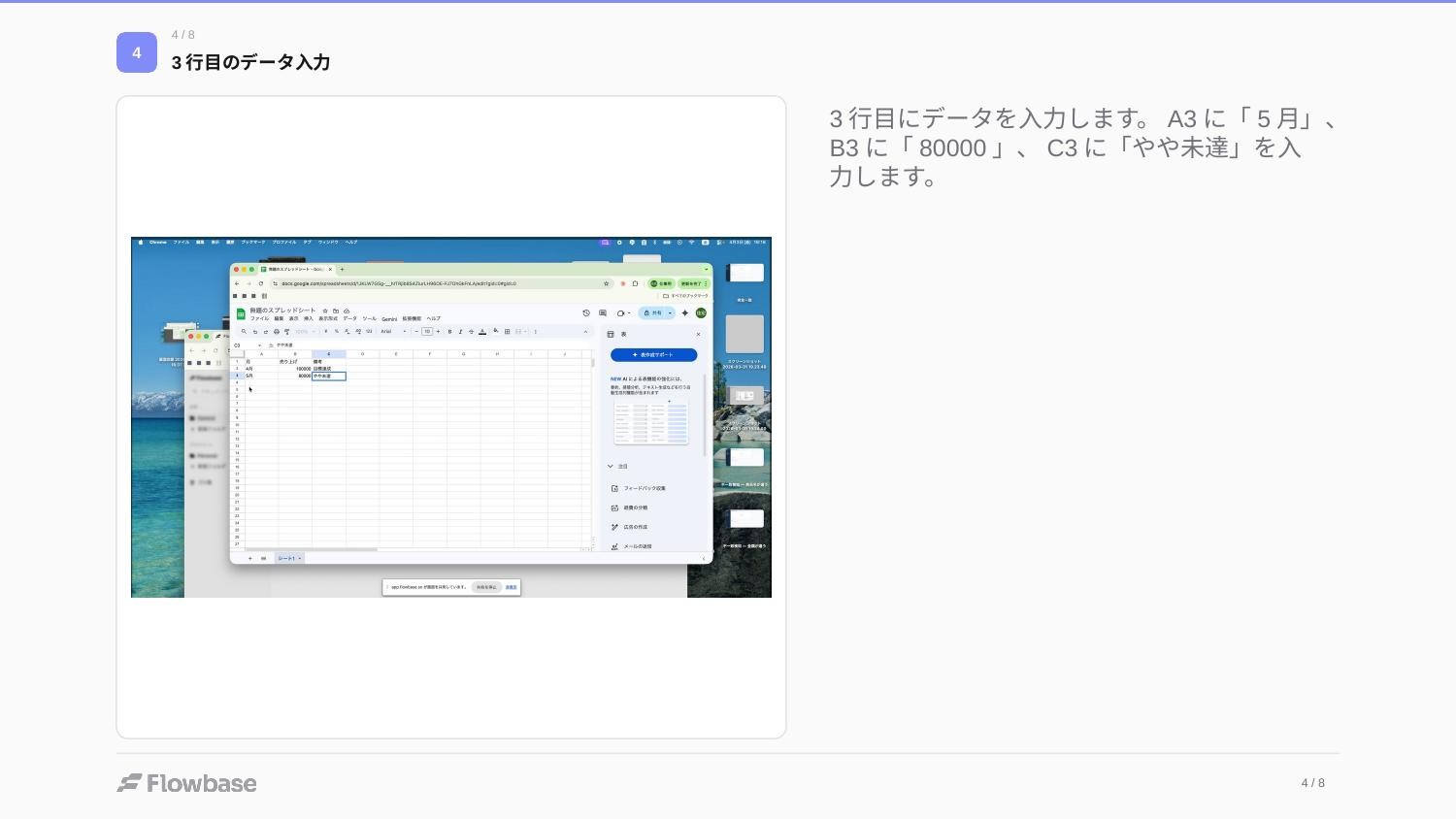 題材: Googleスプレッドシートで売上管理表を作成する操作 検証内容: 同じ操作を2回録画し、AIの認識精度を比較。その後、編集機能・AIリライト・PPTX出力も検証