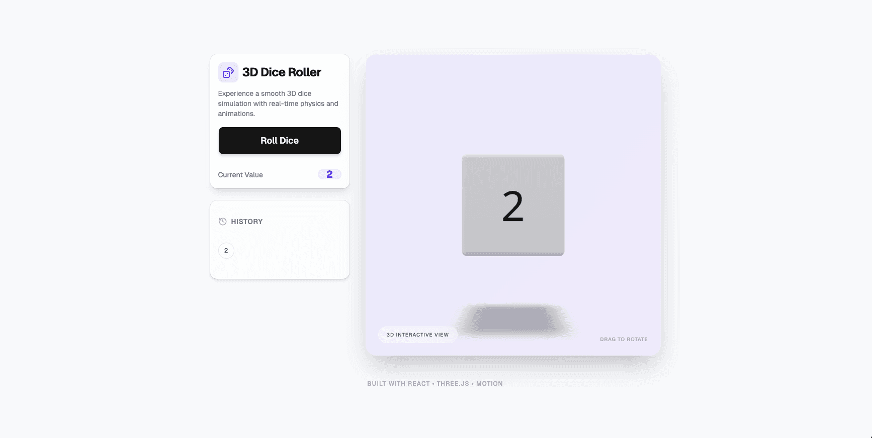 次にライブラリの自動選定を確認した。「Three.jsの3Dサイコロ、Framer Motionのアニメーション、Shadcn UIのモダンなデザイン」という複合的な要件をプロンプトで投げてみる。