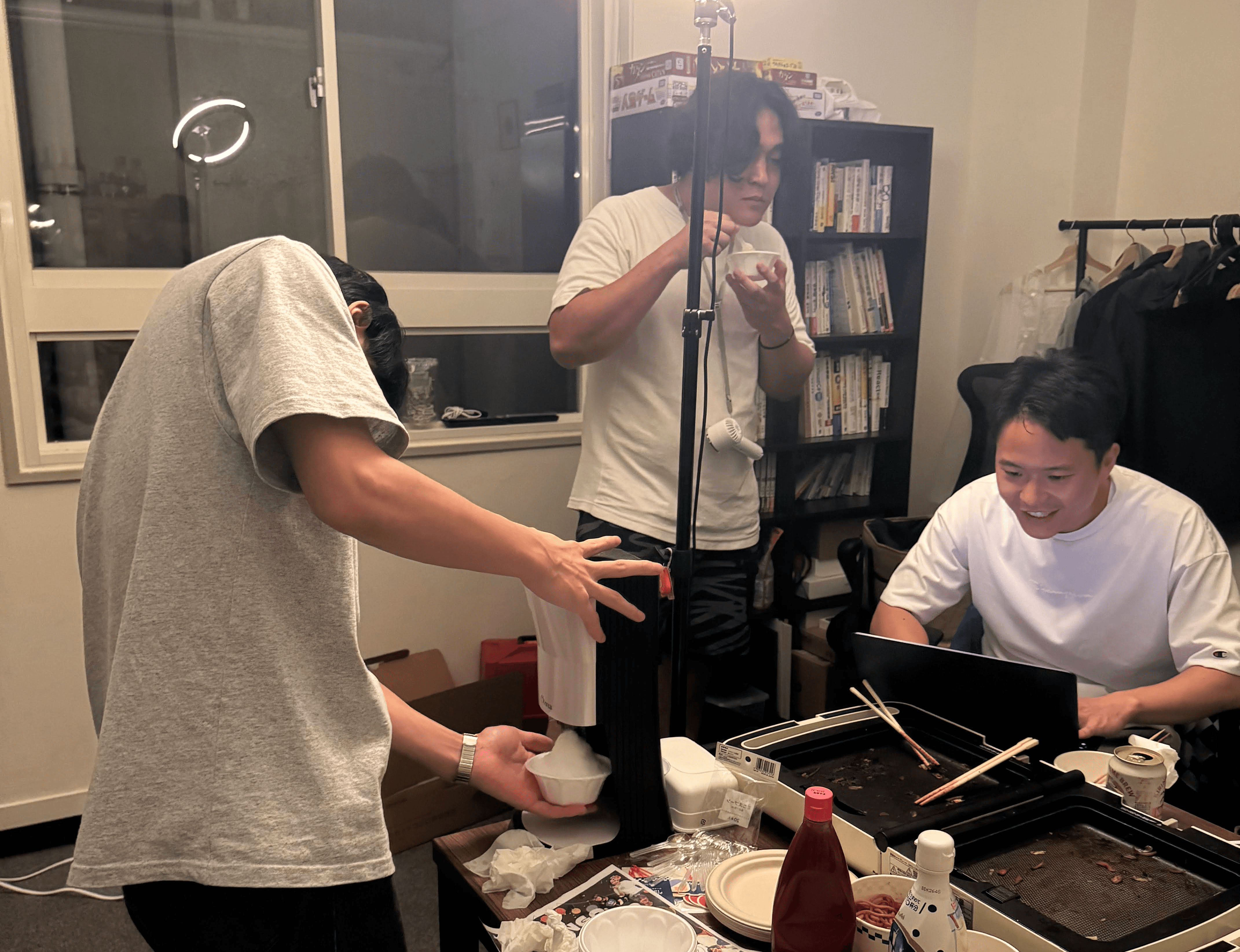 「作りながら楽しむ」というのは想像以上に難しく、焼きそばの火加減に悪戦苦闘したり、たこ焼きがなかなか丸くならなかったり…それでも、みんなで協力しながらワイワイと調理する時間は、普段のオフィスとは違った一体感がありました。