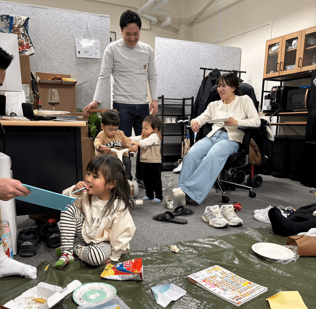 大人たちはお弁当を食べながら談笑し、子供たちは子供たちで大騒ぎ。走り回ったり、遊んだり、オフィスは一気に賑やかな空間に。