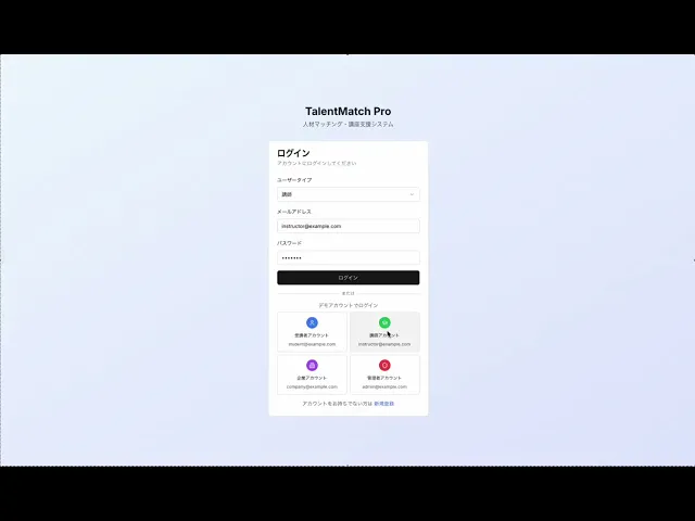 このオンライン講座管理・人材採用プラットフォームは、企業の人材育成と採用活動を効率化するための包括的なシステムです。講師による実践的な講座提供、受講生の学習進捗管理、企業による人材検索・採用管理が一つのプラットフォームで実現できます。オフライン授業をメインとしながら、オンラインで学習サポートと評価管理を行うハイブリッド型の運用に対応しています。