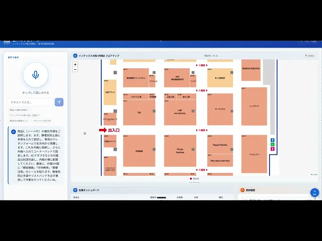 展示会場(インテックス大阪 6号館A)を音声で支援するAIアシスタントです。